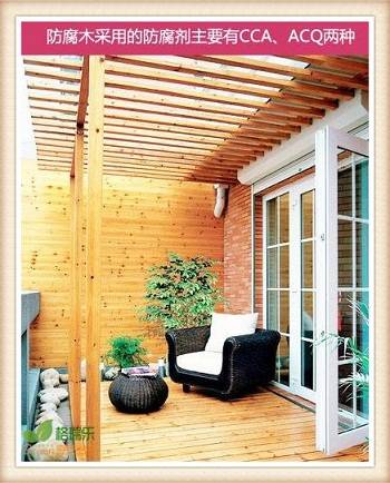 防腐木采用的防腐劑關(guān)系到其環(huán)保性,因此有必要了解一下。防腐劑主要有CCA、ACQ等。CCA主要成分為銅硌砷,ACQ主要成分為氨溶烷基胺銅。